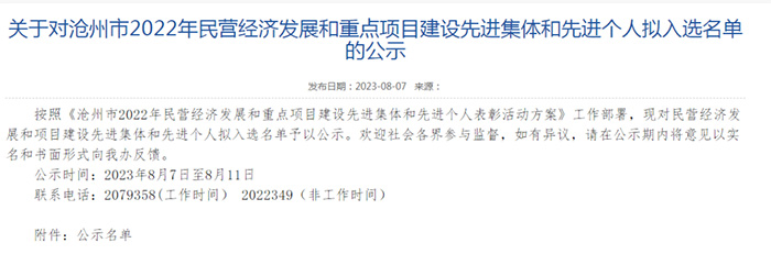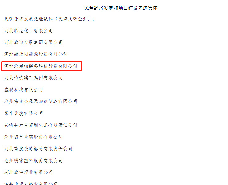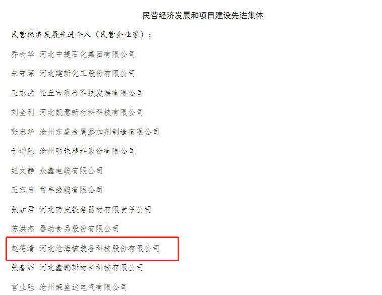 近日,河北滄海核裝備科技股份有限公司榮膺“2022年度滄州市民營經(jīng)濟(jì)發(fā)展優(yōu) 秀企業(yè)”榮譽(yù)稱號,董事長趙德清獲民營經(jīng)濟(jì)發(fā)展先 進(jìn)個(gè)人稱號。