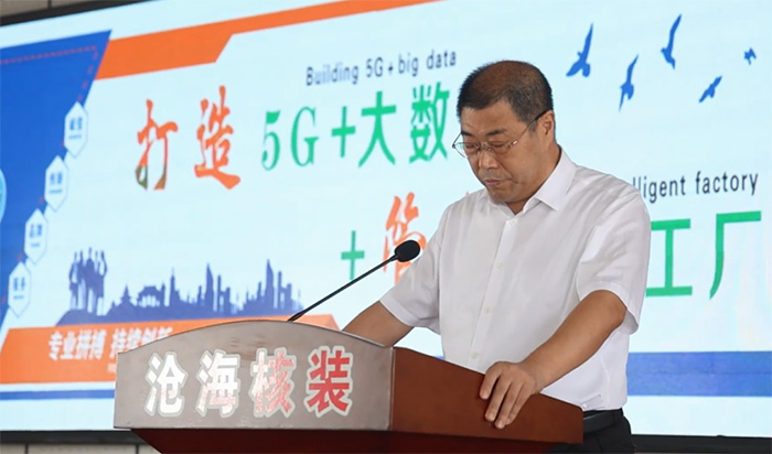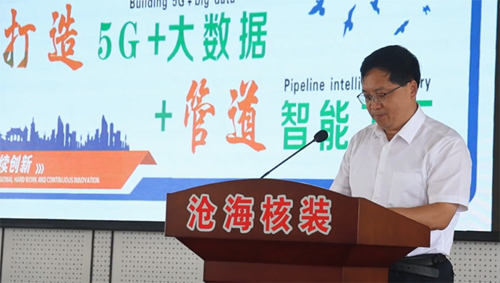 潘佳庭在致辭時指出,近年來,鹽山縣圍繞產(chǎn)業(yè)轉(zhuǎn)型升級,加快智能化生產(chǎn)管理進程,努力推進管道裝備產(chǎn)業(yè)向數(shù)字化轉(zhuǎn)型和智能化提升,實現(xiàn)管道裝備產(chǎn)業(yè)智能制造、智慧運行。滄海核裝備科技股份有限公司作為我縣高 端管道制造企業(yè),積極響應(yīng)政府號召,與國內(nèi)知名科研院所和運營商合作,謀劃了“5G+大數(shù)據(jù)+管道智能工廠”項目,該項目的實施將進一步加快推動全縣工業(yè)轉(zhuǎn)型升級步伐,為鹽山經(jīng)濟社會高質(zhì)量發(fā)展注入新的活力。